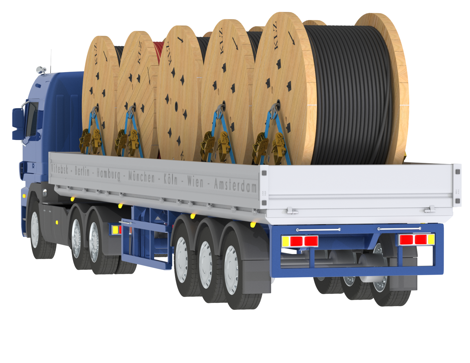 Anyone who transports cables moves tons of weight. Weight which starts rolling if not professionally secured. Highly experienced forwarders are to be selected when it comes to handling drums with care It needs securing the drums to the ground with the right beams. Tighten the straps properly without damaging the cable. Reloading, unloading, meeting time schedules. Being available and reliable. KLZ chooses and coordinates the logistic partners with care in order to guarantee the requirements mentioned above.